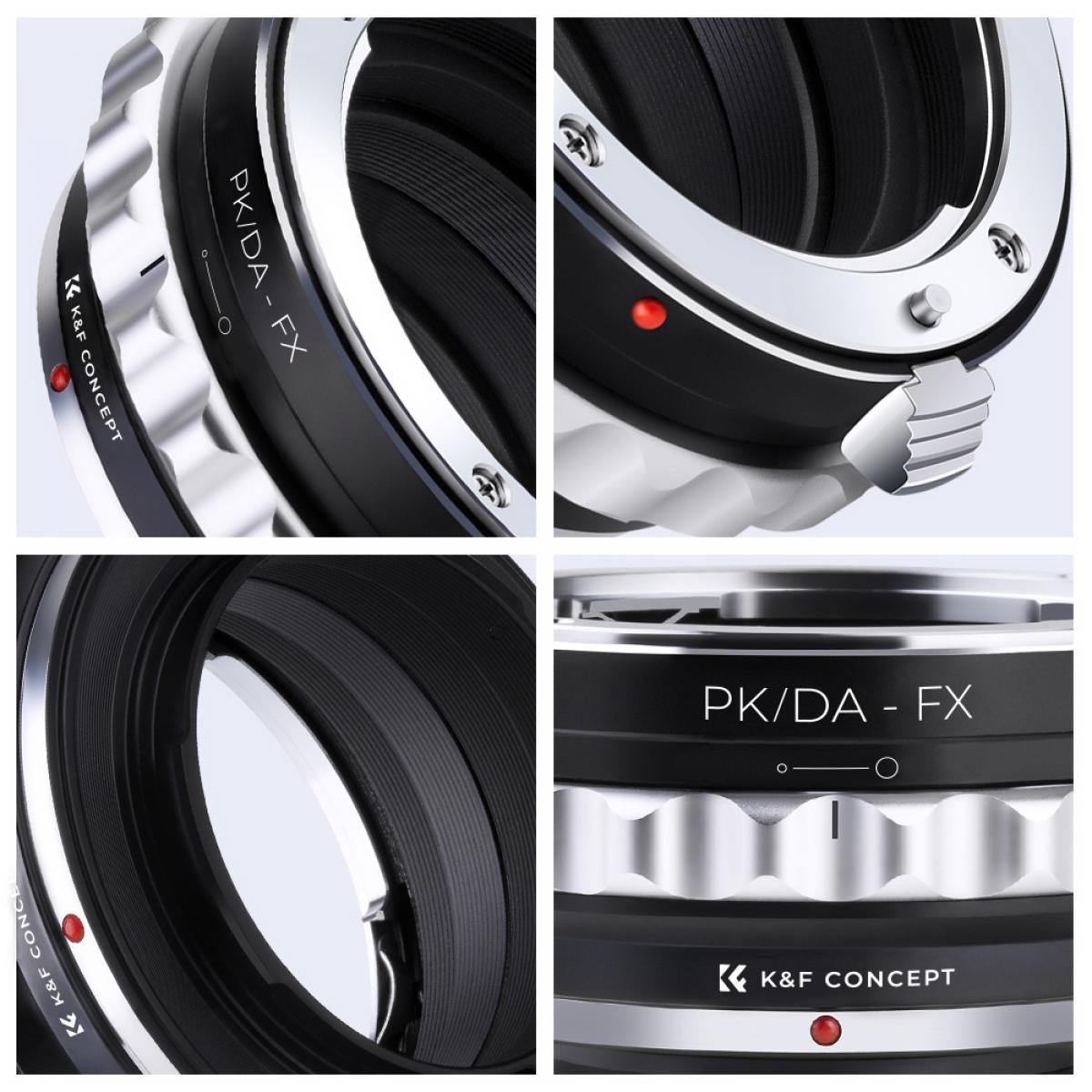 Der K&F Pentax K/M/A/FA/DA zu Fuji X Mount Adapter ermöglicht die Verwendung von Pentax-Objektiven an spiegellosen Kameras der Fujifilm X-Serie. Er zeichnet sich durch eine robuste Konstruktion aus Messing und Aluminium, manuelle Bedienung und vollständige Unterstützung der Unendlichkeitsfokussierung aus.