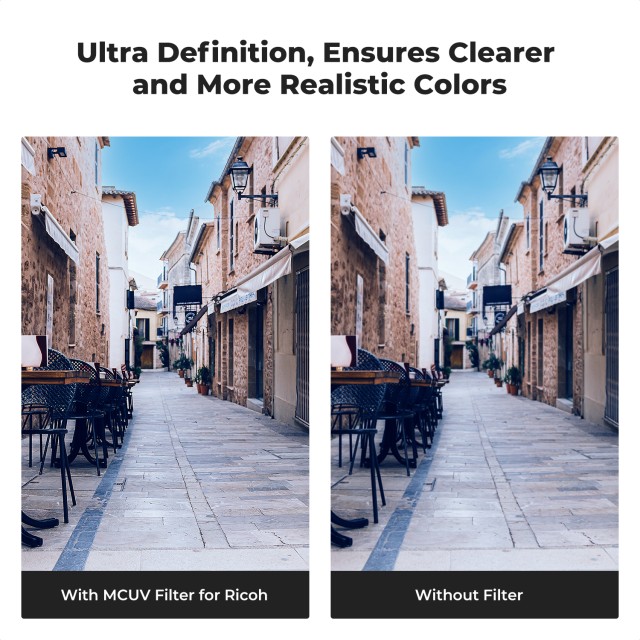 Verbessern Sie Ihre Fotografie mit dem K&F MCUV-Filter, der speziell für die Kameras der Ricoh GR-Serie entwickelt wurde, einschließlich der Modelle GR II, GR III, GR IIIx, GR IIIx HDF, Diary Edition und Street Edition. Hergestellt aus ultradünnem, ultraleichtem optischem Glas, garantiert dieser Filter hochauflösende Klarheit und lebendige, realistische Farben für jede Aufnahme.