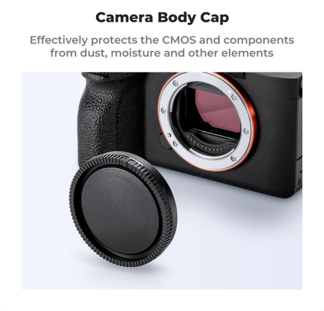 Schützen Sie Ihre wertvolle Sony E-Mount Kamera und Objektive mit dem K&F Sony E-Mount Body Cap & Lens Rear Cap Kit. Dieses 7-teilige Set wurde für die Kompatibilität mit einer breiten Palette von Sony E-Mount-Kameras und -Objektiven entwickelt und bietet umfassenden Schutz vor Staub, Schmutz, Wasserflecken und Kratzern.