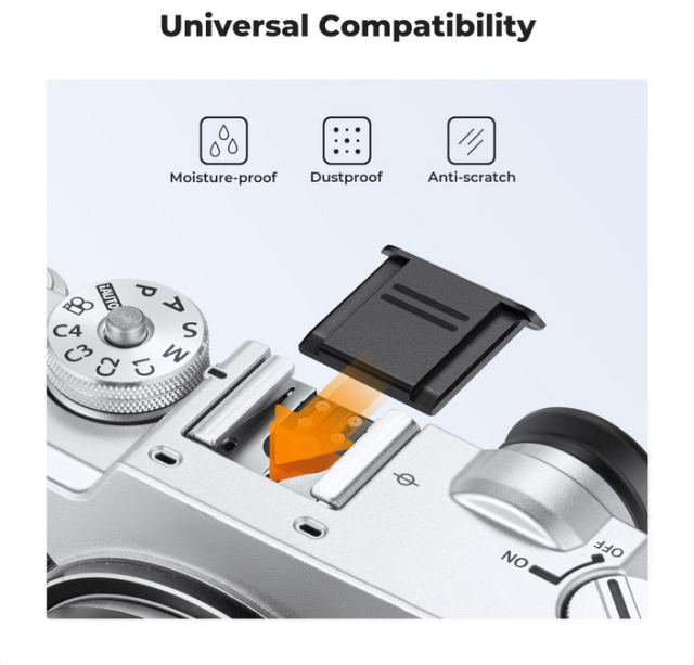 Das Set enthält außerdem zwei Blitzschuhabdeckungen, um den Blitzschuh Ihrer Kamera vor Schmutz und Beschädigungen zu schützen, während das mitgelieferte Reinigungstuch dazu beiträgt, Objektiv und Kamera sauber zu halten. Das Bajonettdesign ermöglicht ein schnelles und problemloses Anbringen und Entfernen.