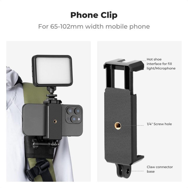 K&F Concept Backpack Belt Shoulder Strap Mount Compatible with GoPro Hero 13/12/11/10/9/8/7/6/5/4 Black, Session, fit DJI Osmo Action 5 Pro/4/3 and More Action Camera, 360° Rotation. Es gibt eine 360° Rotationsbasis auf der Halterung, bietet eine Vielzahl von Aufnahmewinkeln, lässt Sie die Kamera drehen, um die perfekte Aufnahme zu machen. Installieren…