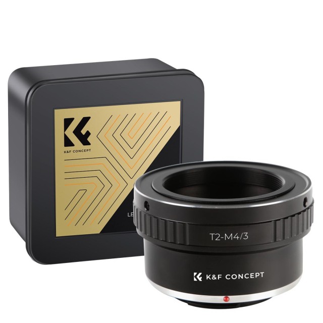 Der K&F T2-zu-Micro-Four-Thirds-Objektivadapter (MFT/M43) ermöglicht die Verwendung von T2-Objektiven an Micro-4/3-Kameras. Er besteht aus strapazierfähigem Messing und Aluminium und bietet eine stabile und präzise Verbindung, die den manuellen Betrieb und die Unendlichkeitsfokussierung für vielseitige Aufnahmen unterstützt.