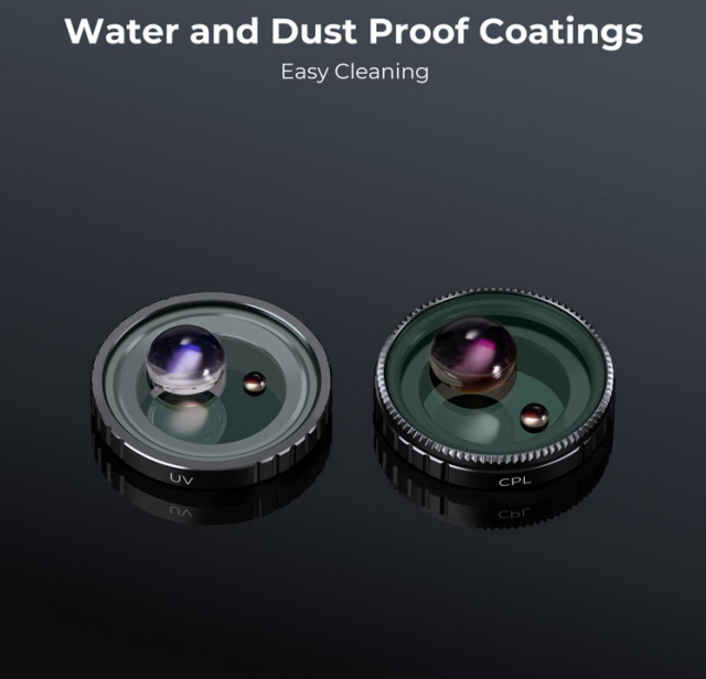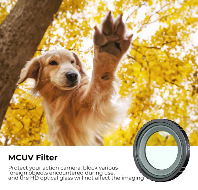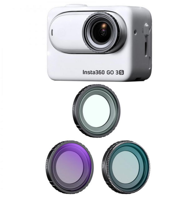 Das K&F UV+CPL+ND4 Filter Kit für die Insta360 GO 3S Action-Kameras enthält mehrfach vergütete Filter zum Schutz des Objektivs und zur Verbesserung der Bildqualität durch Reduzierung von Blendeffekten, Trübungen und Lichtkontrolle.