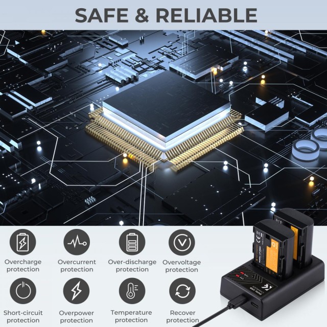 - * 【Sicherheit intelligenter Schutz】 LCD-Doppelladegerät zeigt den Batterieladestatus genau an, Ladeprozess mit intelligenten Chips, um die Batterie besser vor Überladung, hoher Temperatur, Überstromschutz, Überspannungsschutz, Kurzschlussschutz zu schützen
