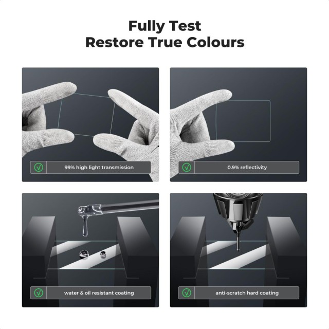 • Hohe Transparenz: 99,99 % HD-Klarheit mit hydrophober Beschichtung
