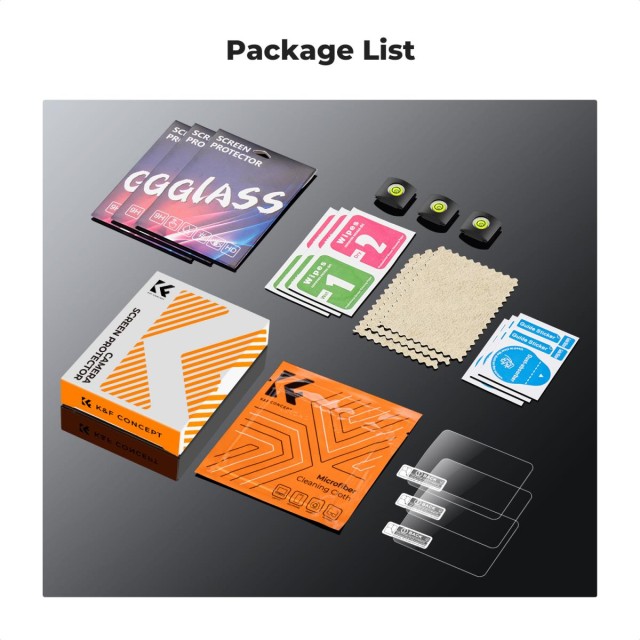Schützen Sie Ihre Kamera und sorgen Sie für einen präzisen Aufnahme-Workflow mit dem K&F Concept Displayschutz und dem Blitzschuh-Nivellierungsset, das speziell für Canon Rebel T7-, T6- und T5-DSLR-Kameras entwickelt wurde. Dieses All-in-One-Set enthält drei hochwertige Displayschutzfolien aus 9H-gehärtetem Glas, die das Display Ihrer Kamera vor Kratzern, Stößen, Staub und Fingerabdrücken schützen und so für lang anhaltende Klarheit und Schutz bei Innen- und Außenaufnahmen sorgen.