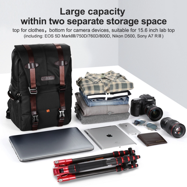- Großes Fassungsvermögen: 13L, 1 Kamera + 2 Objektive, 15,6"" Laptopfach