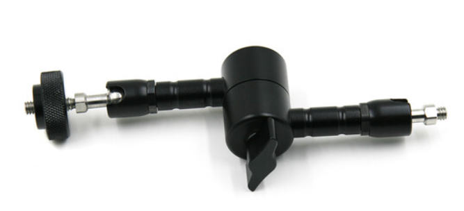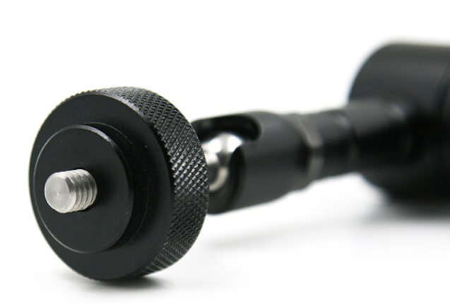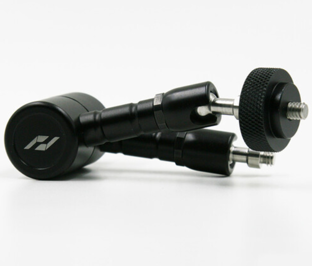 Der Kinefinity 6" Gelenkarm (A612-509-01) trägt bis zu 4 kg und verfügt über drei Metallgelenke und einen einzigen Drehverschlussgriff. Zwei 1/4"-20-Außengewinde ermöglichen die sichere Befestigung von Monitoren, Leuchten oder Zubehör – kompakt (15,2 cm) und robust für Kino-Rigs.