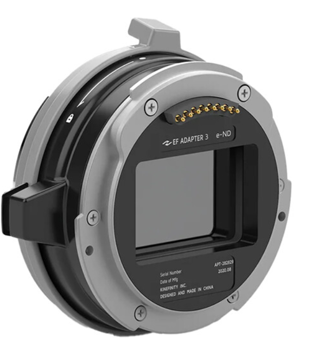 Der Kinefinity EF 3-Montageadapter mit e-ND (A230-003-01) ist für alle KineMOUNT-Kameras (MAVO Edge 8K/6K, MAVO mark2 LF/S35, TERRA 4K) konzipiert und bietet eine doppelte Verriegelung: traditionelle DSLR-Drehung im Uhrzeigersinn plus aktive Verriegelung im Cine-Stil für null Spielraum – ideal für Follow-Focus-Getriebe. Elektronische Kontakte unterstützen die Blendensteuerung bei 95 % der EF-Objektive direkt über das Kamerarad oder SideGrip. Der integrierteFlüssigkristall-e-ND bietet eine nahtlose, flimmerfreie Dichteeinstellung mit automatischer Farbkalibrierung – MAVO/TERRAerkennt den Adapter beim Anbringen und korrigiert jede Mikroverschiebung über den gesamten Bereich, wodurch perfekte Farben von ND 0,6 bis 2,1 gewährleistet sind. Keine Matteboxen, Filterhalterungen oder Vignettierung mehr.