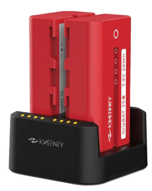 Das Kinefinity A941-202-02 GripBAT 2Si 2-Akku-Pack und PD Hybrid Dual-Ladegerät-Kit ist ein kompaktes, leistungsstarkes L-Serie-Stromversorgungspaket, das zwei leuchtend rote/weiße 26-Wh-GripBAT 2Si-Akkus (3500 mAh, 5 A Dauerleistung) und das intelligente PD Hybrid Dual Charger, das das gleichzeitige Schnellladen von zwei Akkus der L-Serie, zwei BP-U30 oder je einem Akku über 60 W+ USB-C PD ermöglicht – perfekt für ununterbrochene Aufnahmen mit MAVO Edge, Leuchten oder Monitoren.