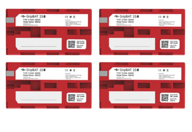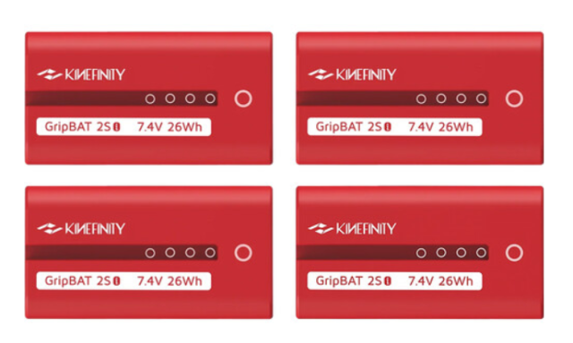 Das Kinefinity GripBAT 2Si 4er-Pack (A941-201-02) enthält 4× 3500 mAh / 26 Wh Sony L-Serie Akkus in Rot/Weiß. 75 % mehr Kapazität als NP-F550, 5 A / 40 W Dauerleistung, 4-LED-Anzeige, vollständiger Schutz. Perfekt für MAVO Edge Hybridplatten, Monitore, Leuchten – 90 Minuten vollständige Aufladung mit PD Hybrid Dual Charger.