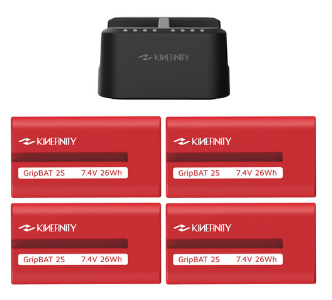 Das Kinefinity A941-203-02-Paket enthält vier robuste GripBAT 2Si L-Serie-Akkus (26 Wh, 7,4 V, 5 A) ohne Memory-Effekt und mit vollständigem Schutz vor Überladung, Überentladung und Überhitzung – jeder wiegt nur 104 g und ist in der charakteristischen rot-weißen Lackierung gehalten. Das mitgelieferte PD-Hybrid-Doppel-Ladegerät erkennt automatisch den Akkutyp und lädt zwei Akkus der L-Serie, zwei BP-U30 (GripBAT 4S) oder je einen von beiden gleichzeitig mit echter PD-Schnellladung (3 A einzeln / 2 A doppelt). Das Ladegerät wird über eine beliebige USB-C-PD-Quelle mit mindestens 60 W (Kinefinity 65-W-Adapter empfohlen) mit Strom versorgt und verfügt über helle mehrfarbige LEDs, die den Status jedes Steckplatzes in Echtzeit anzeigen. Mit nur 95 g ist das Ladegerät reisefertig und zukunftssicher für Ihren Workflow in Sony NP-F-Ökosystemen und Kinefinity-Rigs – perfekt für EAGLE e-Viewfinder, KineMON, LED-Panels oder Hot-Swap-Backup auf der KineKIT-Edge-Power-Baseplate.