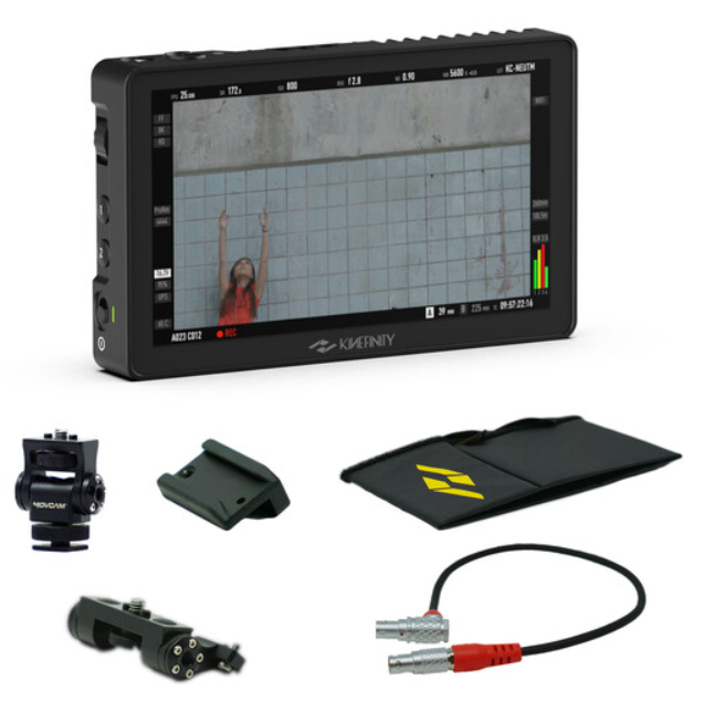 Das Kinefinity A912-001-01 KineMON 5U II Complete Monitor Package ist die All-in-One-Lösung für die Tageslichttaugliche Überwachung von MAVO Edge 8K-, MAVO LF- und TERRA 4K-Kameras. Es umfasst den ultrahellen 2000-Nit-5-Zoll-Touchscreen KineMON-5U II, ein 12-Zoll-Videokabel mit rechtwinkligem Stecker, eine Schwenkhalterung, einen Cold-Shoe-Adapter, einen EVF-Keilblock und eine faltbare Sonnenblende für den sofortigen Einsatz an der Kamera oder am Rig unter allen Lichtverhältnissen.