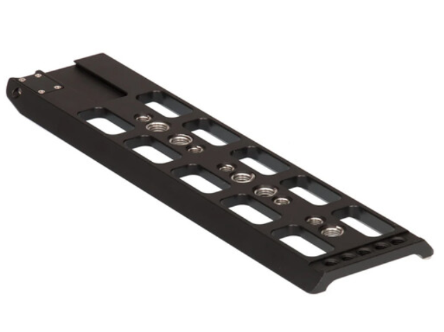 Die Kinefinity Movcam Sliding Dovetail Plate (A601-917-01) ist eine professionelle 10-Zoll-Schnellwechselplatte, die speziell für den KineKIT-Edge-Vollkäfig der MAVO Edge 8K- und 6K-Kameras entwickelt wurde. Sie ist aus leichtem Aluminium CNC-gefräst und verfügt über strategische Ausschnitte. Mit einem Gewicht von nur 270 g bietet sie dennoch eine stabile Halterung für schwere Cine-Objektive und Zubehör. Fünfzehn Gewindebefestigungspunkte (5× 3/8"-16 ARRI-Standard + 10× 1/4"-20) bieten ultimative Flexibilität für die Befestigung von Stangenklemmen, VCT-Keilen, Batterieplatten oder Cheese-Platten. Die schwarze, hart eloxierte Oberfläche passt zur Ästhetik von Kinefinity und ist kratzfest bei intensiven Dreharbeiten. Unverzichtbar für schnelles Ausbalancieren beim Objektivwechsel, Hinzufügen von Matteboxen oder Wechseln zwischen Hand-, Schulter- und Gimbal-Konfigurationen.