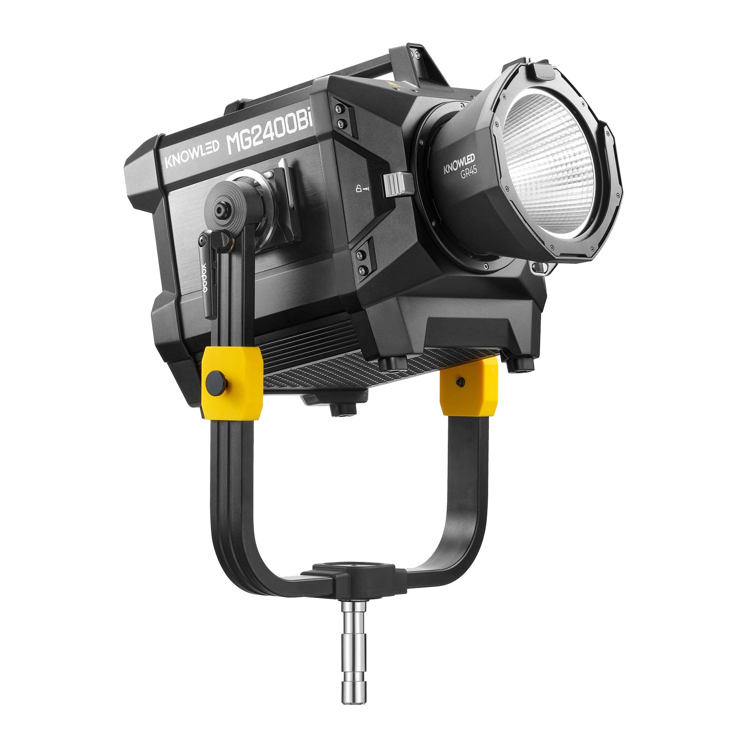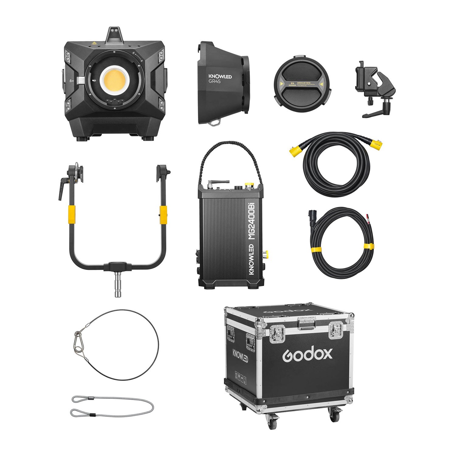 Das Kit enthält einen 45°-GR45-Standardreflektor, eine Schutzabdeckung, ein Befestigungsseil, ein Gleichstromkabel, eine Klemme, eine Antenne, einen Bügel, ein Sicherheitskabel, ein Hauptkabel und einen FC05-Transportkoffer für Transport und Schutz. Mit dem innovativen G-Mount-System erkennt der MG2400Bi intelligent angeschlossene Modifikatoren und passt die Farbtemperatur automatisch an, während sein überlegenes Kühlsystem einen sicheren Betrieb bei längeren Aufnahmen gewährleistet. Flackerfreie Leistung, Leistungsbegrenzungsmodus und eine Wartungserinnerung erhöhen die Betriebssicherheit und machen diese Leuchte ideal für anspruchsvolle Produktionsumgebungen.