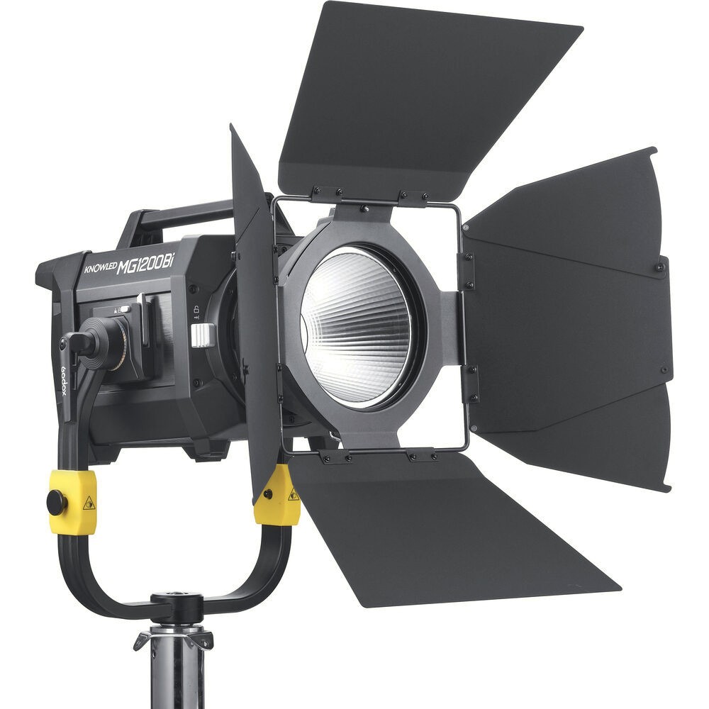 Die Godox Knowled GR45B Barndoor ist ein unverzichtbares Zubehör zur Lichtmodifikation für Nutzer der leistungsstarken LED-Systeme Godox MG1200Bi und MG2400Bi. Diese robuste Metall-Barndoor wurde speziell für die 45°-Reflektoren GR45 und 60°-Reflektoren GR60 entwickelt und ermöglicht eine präzise Richtungssteuerung, sodass Kameraleute, Beleuchter und Fotografen das Licht genau dort formen können, wo es benötigt wird, und gleichzeitig Streulicht in der Umgebung minimieren können. Ihre robuste Konstruktion gewährleistet eine zuverlässige Leistung in anspruchsvollen Produktionsumgebungen und macht sie ideal für Film-, Fernseh-, Werbe- und Studioanwendungen. Ob zum Verengen eines Lichtstrahls, zum Abblocken von Licht auf Hintergründen oder zum Erzeugen definierter Lichtkanten – die GR45B bietet eine einfache, aber äußerst effektive Lösung für die professionelle Lichtsteuerung.