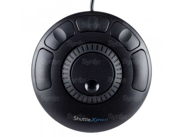 Der Contour Design ShuttleXpress hat 5 programmierbare Tasten und ein Jog- und Shuttle-Rad mit 7 Geschwindigkeitsstufen. Mit einer einfachen App, die im Hintergrund läuft, können Sie die Eigenschaften der einzelnen Schaltflächen jederzeit ändern