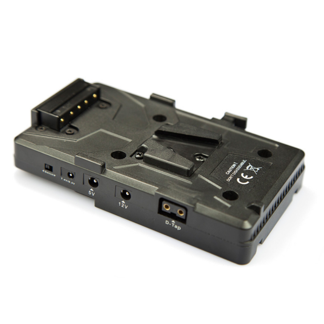 Der VBP-03 V-Mount Battery Pinch ist eine Stromversorgungslösung mit mehreren Stromausgängen. Mit dem V-Verschluss kann diese Batterieplatte direkt an der Kamera befestigt werden. Diese Einheit bietet ein effektives Strom- und Videosignalmanagement. Sie liefert 12, 7,4 und 5V DC an verschiedene Rig-Komponenten. Über einen Klinkeneingang kann der Akku während der Fesselung aufgeladen werden. Das Gerät kann auch ohne Akku betrieben werden, indem der AC-Ladeadapter direkt an die 15/AC-Buchse angeschlossen wird.
