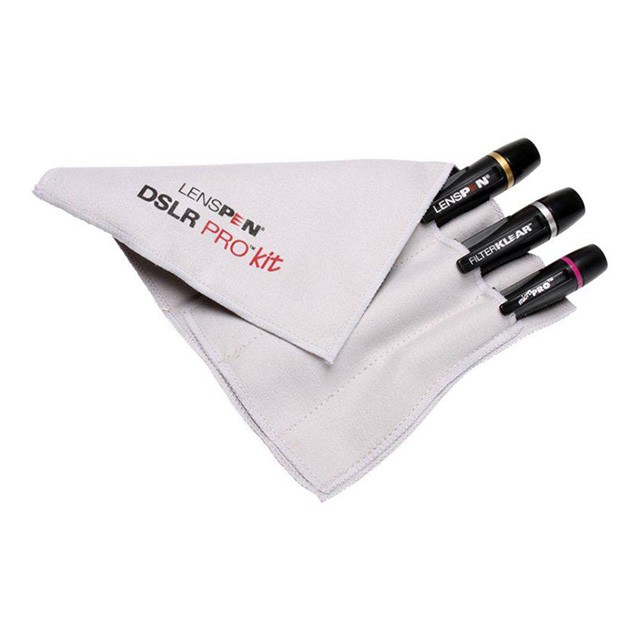 Das LensPen DSLR Pro Kit ist eine umfassende Reinigungslösung, die für die Sauberkeit von Objektiven, Suchern und Filtern entwickelt wurde. Es enthält einen LensPen in Standardgröße, einen FilterKlear für Filter, einen MicroPro für kleine Optiken und ein Mikrofasertuch für den Transport.