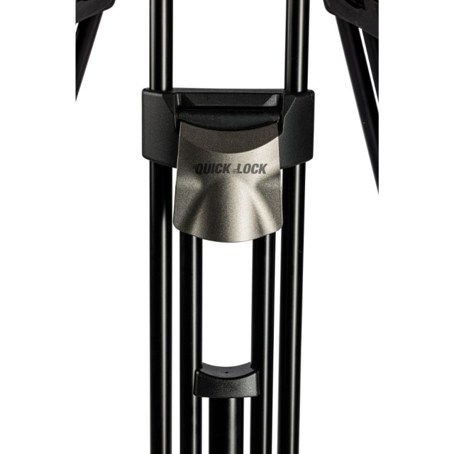 Wenn der Schnellverschluss gelöst wird, fahren die Beine ohne Widerstand aus, so dass das Stativ schnell und reibungslos aufgebaut werden kann. An drei Seiten des Stativfußes befinden sich Zubehöranschlüsse mit 1/4"- und 3/8"-Gewinde, an denen sich Zubehör wie Monitore und Leuchten bequem und sicher befestigen lassen. Aus Sicherheitsgründen sind die Stativbeine so konstruiert, dass sich der Benutzer beim beabsichtigten oder unbeabsichtigten Zusammenklappen des Stativs nicht die Finger einklemmen kann.