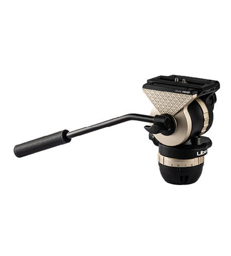Der doppelte Kopf ist sowohl mit einer 75-mm-Halbkugel als auch mit einer flachen Stativbasis kompatibel. Er kann an Slidern, Kamerawagen und anderen Geräten befestigt werden.
