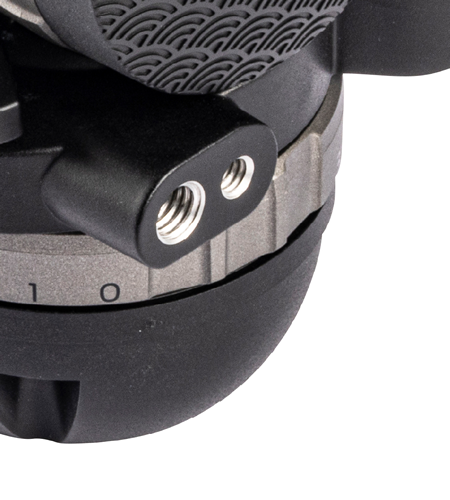 Der doppelte Kopf ist sowohl mit einer 75-mm-Halbkugel als auch mit einer flachen Stativbasis kompatibel. Er kann an Slidern, Kamerawagen und anderen Geräten befestigt werden.