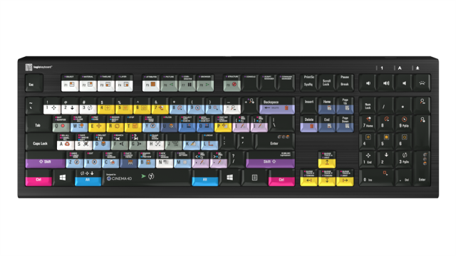 Das Cinema 4D Logickeyboard verfügt über alle Buchstaben, Zahlen und Symbole, die auch auf einer herkömmlichen Tastatur zu finden sind, und kann diese einfach ersetzen. Die Tastatur ist einfach anzuschließen und erfordert keine Software-Installation.
