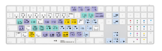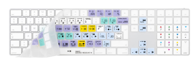 Die LogicKeyboard Blackmagic DaVinci Resolve 14-Abdeckung für das Apple Magic Keyboard (britisches Englisch) ist eine Tastaturauflage aus Silikon, die Ihren Mac vor Staub, Schmutz und verschütteten Flüssigkeiten schützt und gleichzeitig klar beschriftete, farbcodierte Tastenkombinationen für DaVinci Resolve 14 bietet, wodurch die Bearbeitung schneller und effizienter wird.