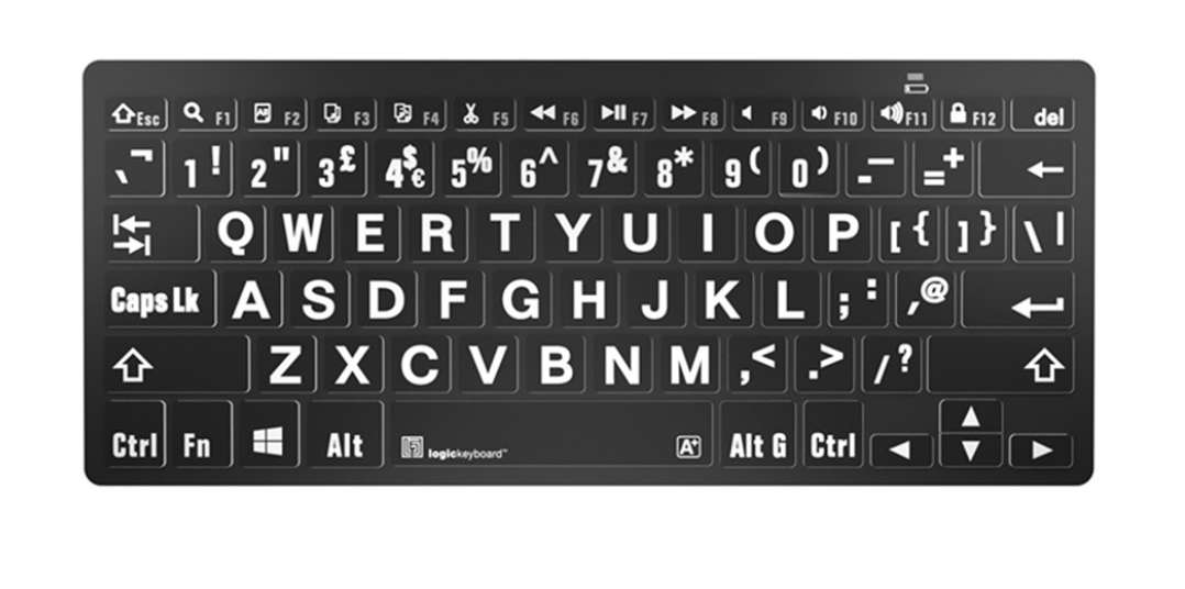 Die LogicKeyboard XLPrint Bluetooth-Tastatur in Weiß auf Schwarz ist eine Tastatur mit großer Schrift, die speziell für Windows-Nutzer mit Sehbehinderungen entwickelt wurde. Mit 78 Tasten mit fetter Beschriftung in Weiß auf Schwarz, Bluetooth-Konnektivität und taktilen Scherenmechanik-Tasten bietet sie ein komfortables, mobiles und kabelloses Tipperlebnis.