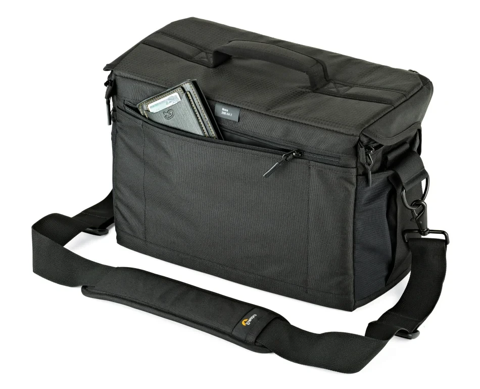 Černá brašna na fotoaparát Lowepro Nova 200 AW II ve stylu messengeru je navržena pro cestující fotografy. Pojme vaši profesionální zrcadlovku nebo bezzrcadlovku a dva až čtyři další objektivy, blesk a několik drobných doplňků.