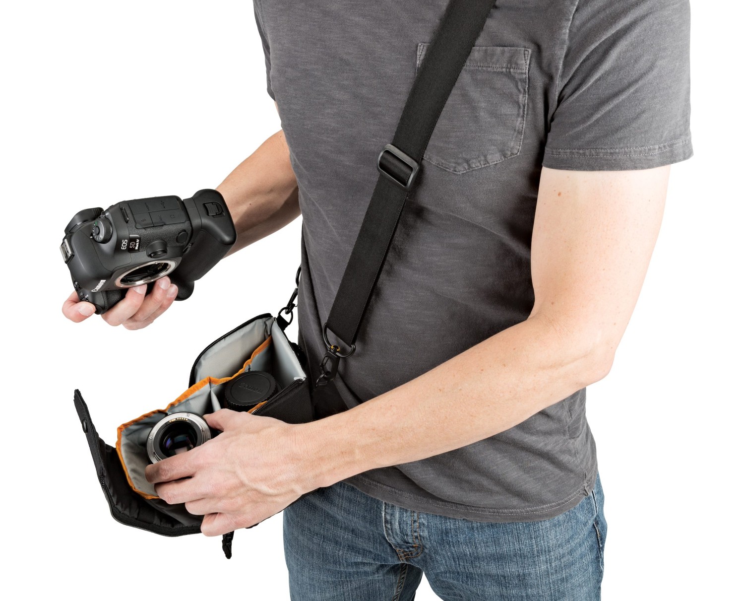 Die Lowepro ProTactic LensExchange 100 AW ist eine speziell entwickelte Objektivtasche, die es Fotografen ermöglicht, Objektive schnell und mit nur einer Hand zu wechseln. Sie wurde für Standard- und Ultraweitwinkel-Zoomobjektive konzipiert, bietet während des Wechsels Platz für zwei Objektive, lässt sich über SlipLock™ an ProTactic-Rucksäcken…