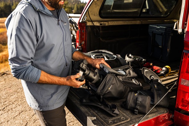 Der ProTactic TLZ 75 Pro AW III wurde speziell für Fotografen entwickelt, die den ganzen Tag über bei Veranstaltungen und anderen Aufgaben im Freien fotografieren. Diese Toploader-Tasche ist für ein Vollformat-Gehäuse mit einem Porträtgriff und einem angesetzten Objektiv (70-200 f2,8) ohne Teleskop) ausgelegt. Die Tasche verfügt über ein Erweiterungsfach, in dem eine Gegenlichtblende in Aufnahmeposition untergebracht werden kann, und die Klappe lässt sich seitlich umschlagen, um den Zugriff auf den Griff zu erleichtern. Die Schnellverschlussschnalle ermöglicht einen schnellen Zugriff oder zusätzliche Sicherheit, während die Inneneinteilung die Kamera in der Nähe der Oberseite hält, damit sie leicht herausgenommen werden kann, oder die Tasche für ein Kit mit zwei Objektiven unterteilt.