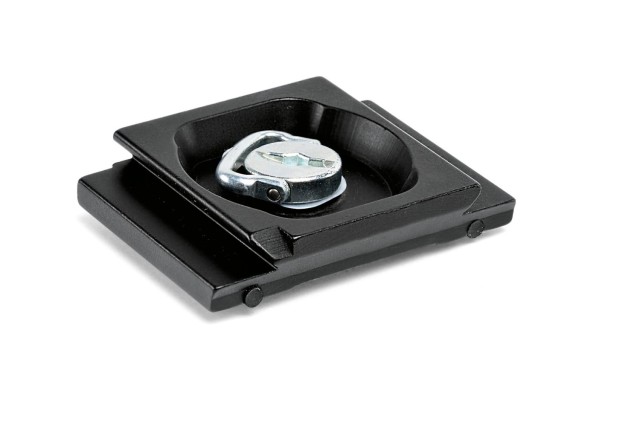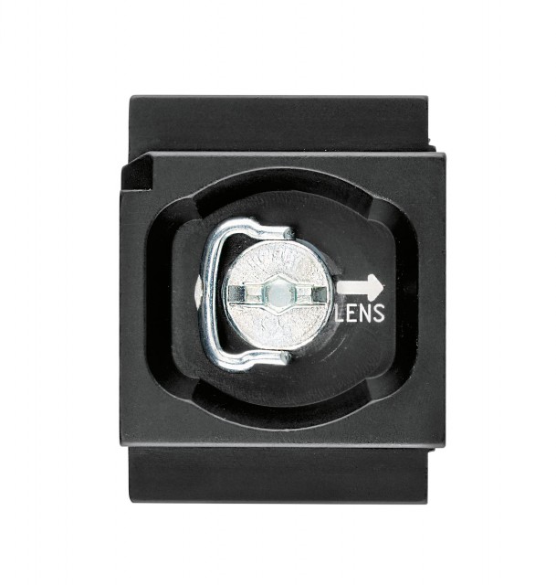 Die 200PL-PRO-Platte wird ganz einfach unter der Kamera befestigt, indem Sie die spezielle Klappe mit den Fingern, einer Münze oder dem mitgelieferten Inbusschlüssel drehenund direkt an der Kamera befestigen.