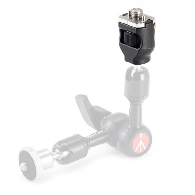 Der Manfrotto 244ADPT38AA ist ein 46 g leichter, verdrehsicherer Adapter im ARRI-Stil mit 3/8"-Gewinde, zwei Positionierungsstiften und einer umkehrbaren Stahlplatte, der eine sofortige, absolut stabile Befestigung von Monitoren, LEDs oder Zubehör an 244 Mini/Micro-Reibungsarmen ermöglicht – komplett mit Feststellknopf und Sechskantschlüssel.
