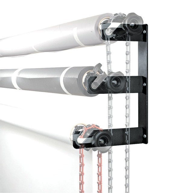 Die Manfrotto 045 Hintergrundhalterungshaken sind ein 2,17 kg schweres Set aus zwei Stahlhalterungen, die drei Expan 046-Antriebe tragen – sie können mit den mitgelieferten Bolzen/Schrauben an Wänden oder mit der Super Clamp 035 und dem mitgelieferten Schraubensatz befestigt werden und bieten ein vielseitiges, leiterfreies Hintergrundsystem für nahtlose Papierrollen.