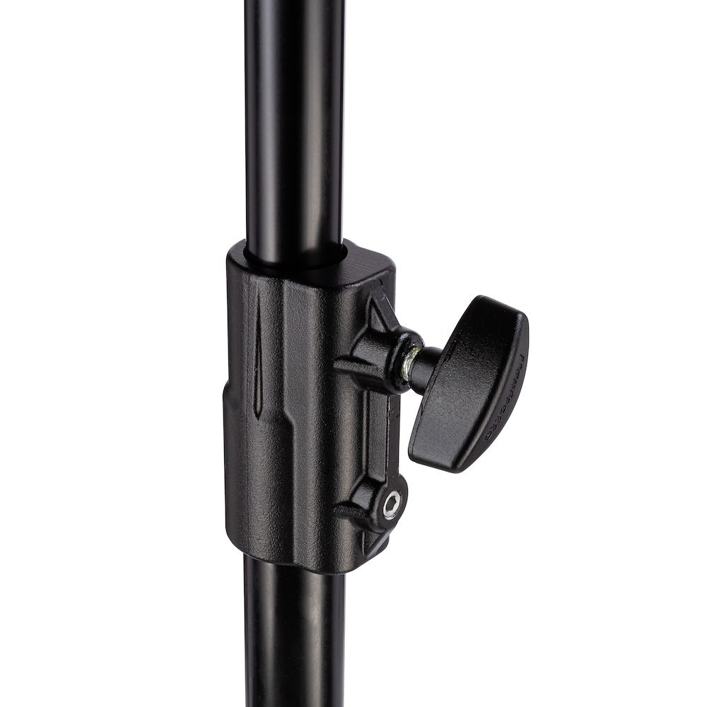 Die Manfrotto 142B ist eine robuste, schwarze Aluminium-Ausziehstange mit zwei Abschnitten (125–210 cm), die direkt auf jeden Junior-Stativkopf (28 mm) geschraubt werden kann und sofort eine zusätzliche Höhe von bis zu 82 cm bietet. Perfekt, um große Leuchten, Überkopfrahmen oder Butterfly-Rahmen höher als mit Standardstativen zu positionieren.