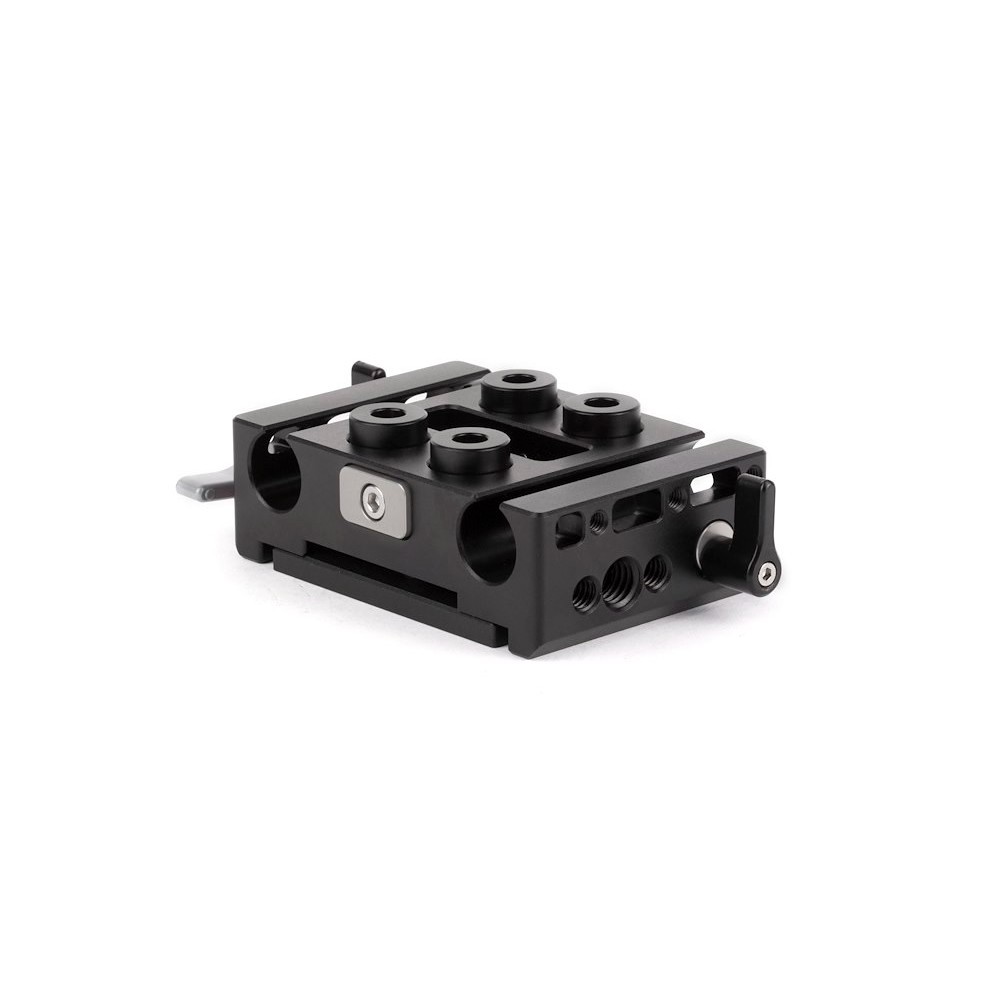 Die Manfrotto MVCCBP Kamera-Käfig-Grundplatte 15 mm ist eine robuste, höhenverstellbare Aluminium-Grundplatte, die entwickelt wurde, um das modulare Kamera-Käfigsystem von Manfrotto (Small MVCCS, Medium MVCCM und Large MVCCL) mit einer standardmäßigen 15-mm-LWS-Stangenhalterung (Lightweight Spacing) auszustatten. Die Grundplatte wird mit mehreren Schrauben sicher am Cage befestigt und verfügt über zwei 15-mm-Stangenklammern mit werkzeuglosen Feststellschrauben. In Kombination mit Manfrotto 15-mm-Stangen (z. B. MVA520W-1) und Zubehör wie dem MVA511FF Follow Focus oder dem MVA514W Lens Support lässt sich in wenigen Minuten ein voll ausgestattetes Schulter- oder Stativ-Rig zusammenstellen.