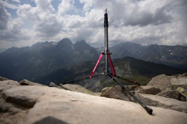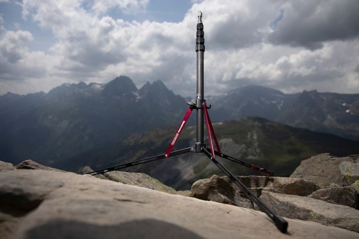 Der Manfrotto MS0490C Carbon Fiber Nanopole Stand ist ein 0,75 kg schwerer 5-teiliger Carbon/Aluminium-Hybrid, der sich auf 50,8 cm zusammenklappen lässt, auf 196,8 cm (min. 50 cm) ausziehen lässt und eine Tragkraft von 1,5 kg mit umklappbaren Beinen, 100 cm Standfläche, Nivellierfuß, abnehmbarer 5-teiliger Auslegerstange und 5/8"-Aufnahme + umkehrbarem 1/4"-20/3/8"-16-Bolzen bietet – und damit eine ultraleichte, handgepäcktaugliche Halterung für Blitzgeräte, LEDs oder Mikrofone vor Ort oder auf unebenem Gelände.