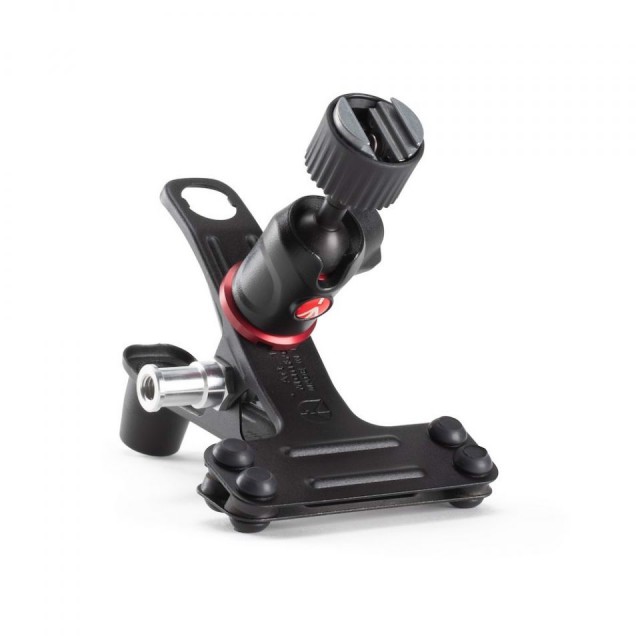 An der Klemme ist ein zuverlässiger Manfrotto-Kugelkopf mit mehreren Positionen und voller Schwenk- und Neigefunktion befestigt. Sobald die Klemme an der gewählten Oberfläche befestigt ist, kann der Benutzer mit einem einzigen Feststellknopf am Kugelkopf das Zubehör präzise im richtigen Winkel positionieren und mit einer einfachen Drehung fest arretieren. An der Oberseite des Kugelkopfes befindet sich Manfrottos hochgelobter Schuhhalterungsmechanismus. Diese einzigartige Halterung ermöglicht es dem Benutzer, sein gewähltes Zubehör einfach und sicher am Kugelkopf zu befestigen. Schrauben Sie einfach den Ring ab, um den Schuh zu öffnen, schieben Sie das Zubehör hinein und ziehen Sie dann den Ring fest, um es sicher am Kugelkopf zu befestigen.