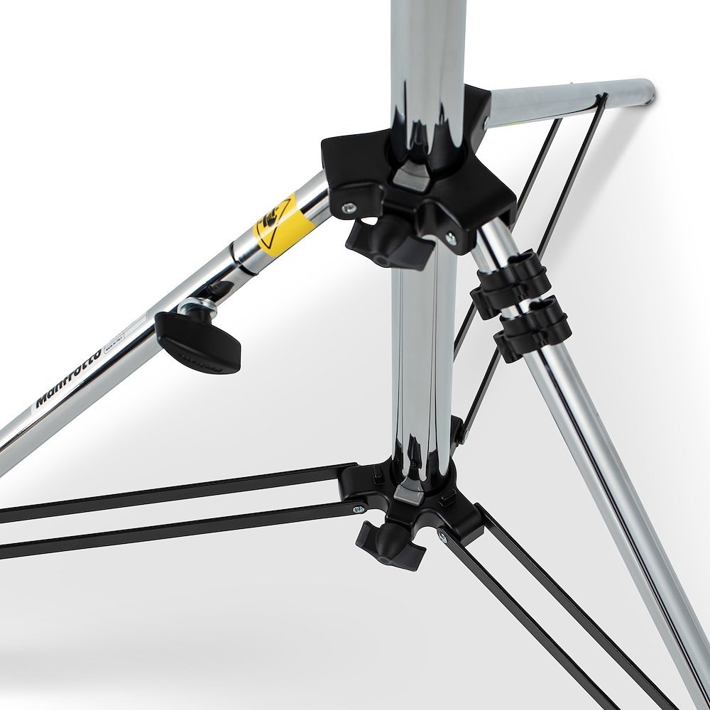 Der Manfrotto 420CSUNS ist die verbesserte „Heavy Duty“-Version des 420B Combi-Boom. Mit seiner vierteiligen Aluminiumsäule (35 mm Oberrohr) und Stahlbasis erreicht er als Stativ eine Höhe von 392 cm und lässt sich in Sekundenschnelle in einen 191 cm langen horizontalen Ausleger mit sanfter koaxialer Federdämpfung für präzise Höhen- und Winkelsteuerung umbauen. Die obere Befestigung bietet eine 16-mm-Buchse + 3/8″- und 1/4″-Gewinde, und für volle Mobilität im Studio können optional 018-Räder hinzugefügt werden.