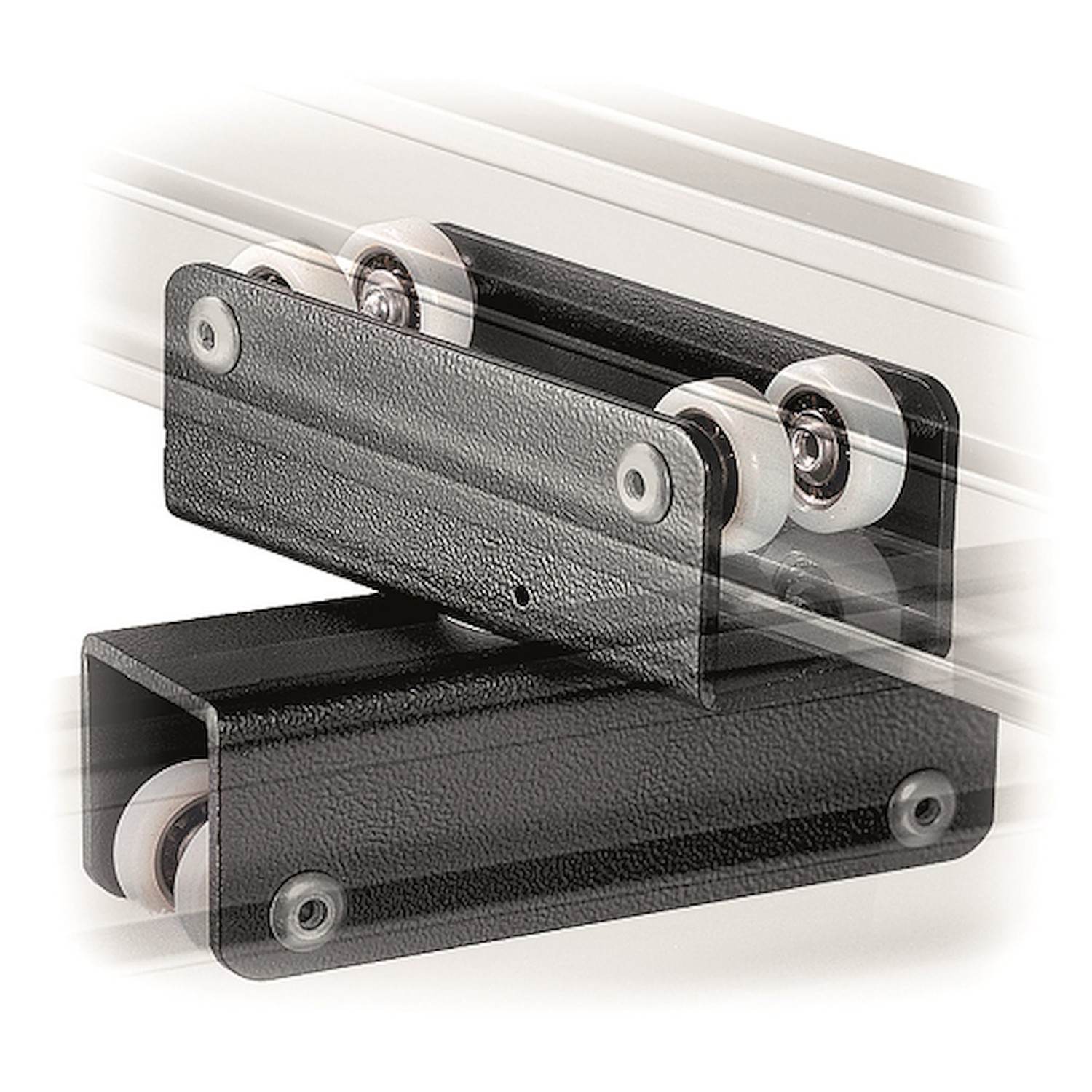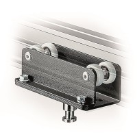 Der Manfrotto FF3232 ist der Schlitten, der die Sky Track-Bewegungsschienen tatsächlich bewegt. Sein oberer Radsatz läuft in einer festen Deckenschiene, während der untere Radsatz eine senkrechte bewegliche Schiene stützt, wodurch eine nahtlose bidirektionale Bewegung entsteht. Präzisionsgefertigte Nylonräder mit Metalllagern laufen flüsterleise und tragen schwere Lasten, ohne zu klemmen. In der Regel werden mehrere FF3232-Wagen alle 1–2 m entlang der beweglichen Schienen eingesetzt, um einen reibungslosen und stabilen Betrieb in permanenten Studioinstallationen zu gewährleisten.