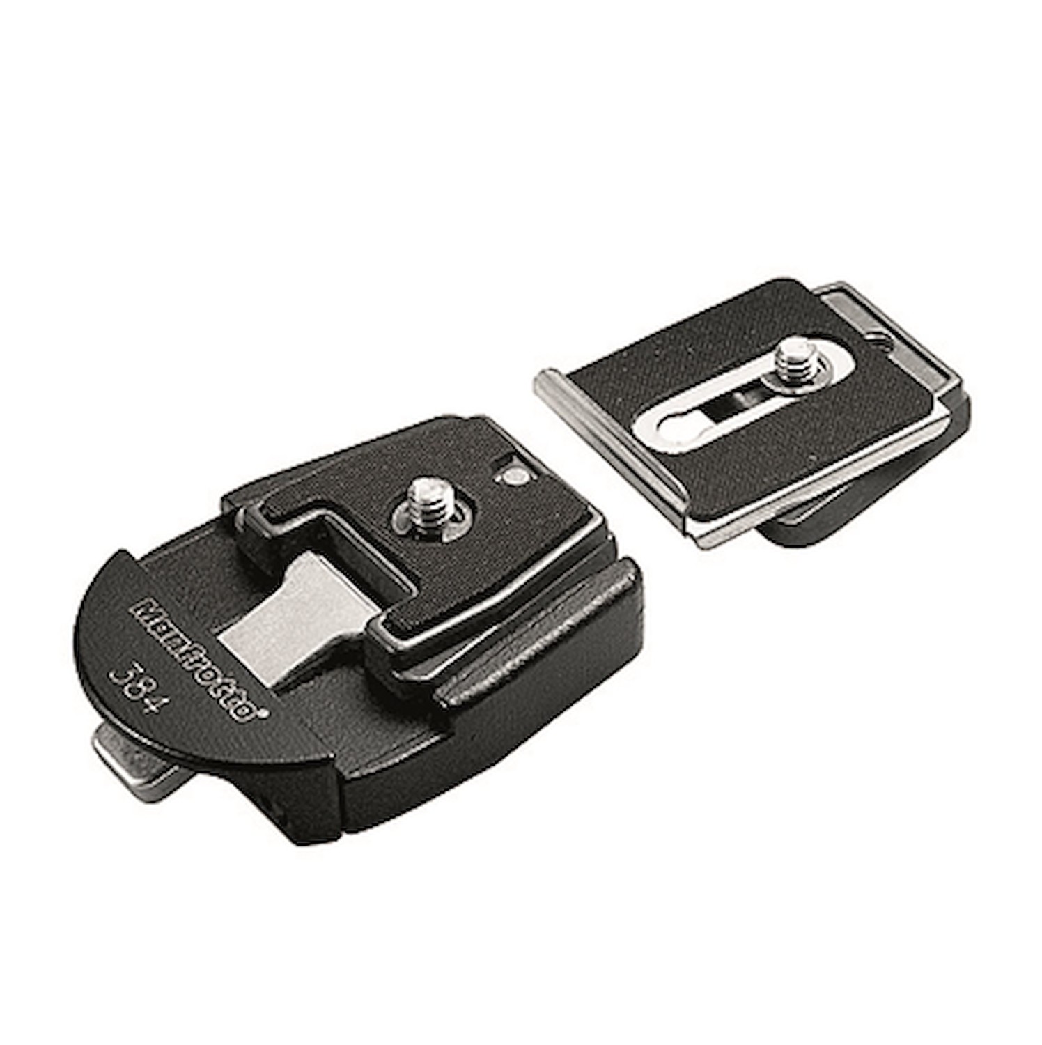 Der Manfrotto 384 Schwalbenschwanzplattenadapter ist ein 170 g schweres Schnellwechselsystem aus Aluminium mit Schwalbenschwanzdesign, einschließlich 384PL- und 384PLARCH-Platten sowie 1/4"-20- und 3/8"-16-Befestigungsschrauben. Er ermöglicht einen schnellen und sicheren Kamerawechsel für Architektur- oder Makroaufnahmen auf kompatiblen Manfrotto-Köpfen.