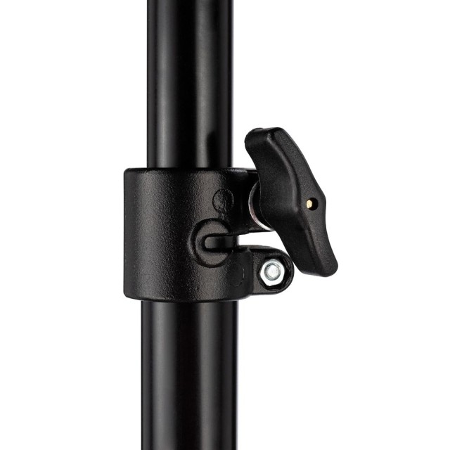 Die Manfrotto 099B ist eine 3-teilige, schwarz eloxierte Aluminium-Verlängerungsstange, die sich von 90 cm bis 235 cm ausziehen lässt und jedem Lichtstativ mit einer 5/8"-Aufnahme und einem 3/8"-Außengewinde für Leuchten, Ausleger oder Griffe eine zusätzliche Höhe von bis zu 1,45 m verleiht. Das Ganze wiegt nur 0,6 kg.