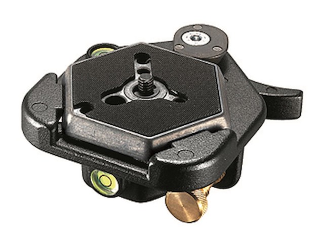 Der vielseitige sechseckige Schnellwechselplattenadapter Manfrotto 625 mit zwei Gewinden (1/4" und 3/8") und integrierten Wasserwaagen für präzise Ausrichtung. Die mitgeliefertesechseckige Platte 030 sorgt für zusätzlichen Komfort und Stabilität beim schnellen Anbringen und Abnehmen.