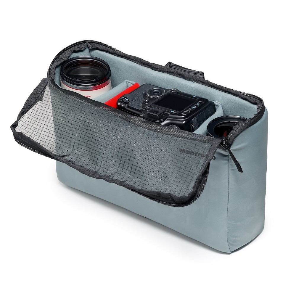 Die Manfrotto Manhattan Speedy-30 Messenger (MB MN-M-SD-30) ist eine stilvolle, urbane graue Kameratasche, die Platz für eine Vollformat-DSLR (z. B. Canon 5D Mark IV) mit einem 70-200 mm f/2,8-Objektiv sowie 3–4 zusätzlichen Objektiven, einem 14-Zoll-Laptop und einem 9,7-Zoll-Tablet. Sie verfügt über einen herausnehmbaren Flexy Camera Shell-Einsatz, eine versteckte Stativbefestigung, einen Fahrradstabilisierungsgurt, eine Trolleyhülle und vollständigen Wetterschutz.