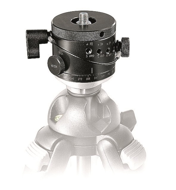 Die Manfrotto 300N Panorama-Dreheinheit ist ein vielseitiges Zubehörteil für Fotografen, die präzise und einfach zu stichende Panoramaaufnahmen oder Objektpanoramen erstellen möchten. Diese robuste Aluminiumvorrichtung ermöglicht sequenzielle Drehungen mit konstantem Winkel um eine einzige Achse und gibt Ihnen die volle Kontrolle über die Anzahl der Aufnahmen, die für ein vollständiges 360°-Panorama erforderlich sind. Sie verfügt über eine Klick-Stopp-Auswahlschraube, die an einem Sicherheitskabel befestigt ist, um eine sichere und bequeme Winkelauswahl zu ermöglichen, sowie über eine zweite Feststellschraube, um unerwünschte Drehungen bei der Verwendung schwerer oder außermittiger Geräte zu verhindern. Über die Panoramafotografie hinaus kann die 300N als Drehscheibenbasis für Objektfotografie oder als Werkzeug zur Messung von Kameraschwenkwinkeln verwendet werden.