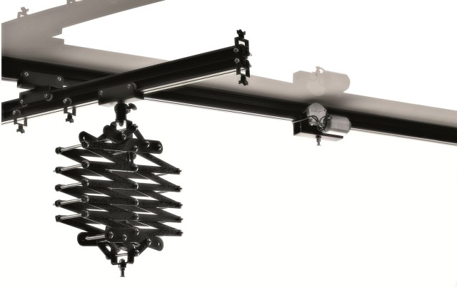Mit Hilfe einer Schiebevorrichtung können Lasten bis zu 12 kg aufgehängt werden, während Lasten bis zu einem maximalen Gewicht von 18 kg die Verwendung von optionalen Federn erfordern. Der Pantograph kann so eingestellt werden, dass er aufgehängte Lasten von 1 kg bis 5 kg perfekt ausbalanciert hält.