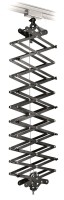 Dies ist ein Manfrotto FF3512N86 Pantograph mit Stahlseil. Der Pantograph ist aus Aluminium gemäß DIN 15560-46 gefertigt. Die Befestigungen an beiden Enden des Pantographen sind 5/8" (16 mm) (oben weiblich, unten männlich). Die Tragfähigkeit wird durch ein Stahlseil mit einem Durchmesser von 2 mm gewährleistet. Der Pantograph lässt sich von einer geschlossenen Länge von 27 cm auf eine maximale Länge von 200 cm ausziehen.