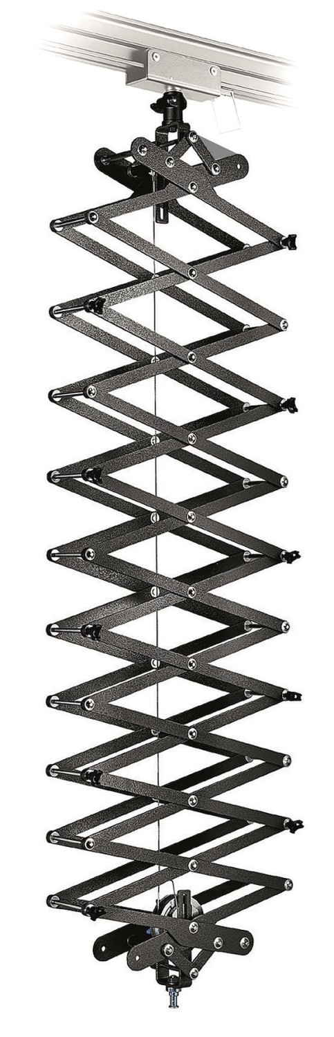 Der Manfrotto FF3514N86 Pantograph Top 4C ist ein professioneller, in Italien hergestellter, an der Decke montierter Pantograph für das Sky Track-System, der sich von 38 cm bis 380 cm ausziehen lässt, 12 kg über Reibung trägt (mit optionalen Federn auf 18 kg aufrüstbar), über eine 5/8″ (16 mm) Buchse oben und einen Bolzen unten verfügt und durch ein 2 mm starkes Stahl-Sicherheitskabel gesichert ist (Sicherheitsfaktor 12:1) gesichert ist – für eine geräuschlose, perfekt ausbalancierte Deckenbeleuchtung in Studios.