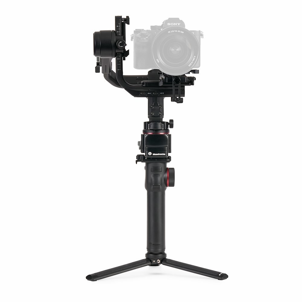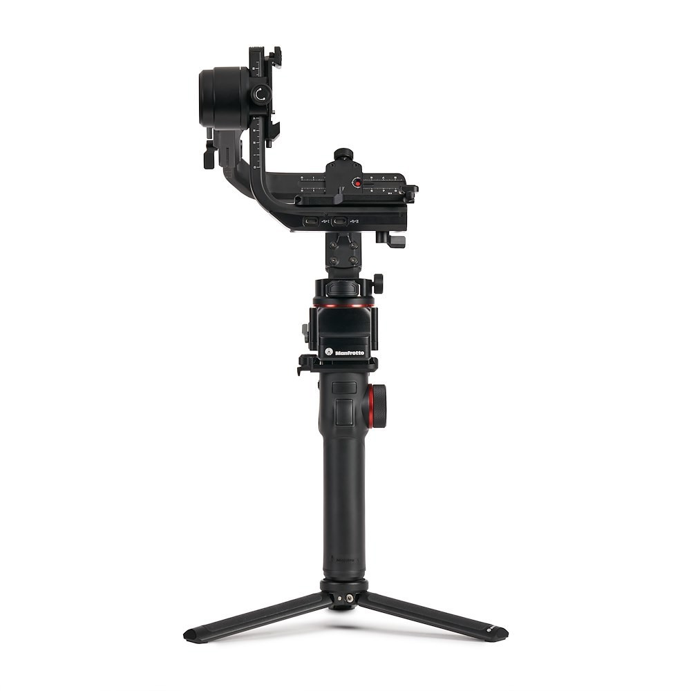 Das Ausbalancieren wird durch rote Markierungspunkte an den vertikalen und Querarmen vereinfacht, und unabhängige Achsenverriegelungen verhindern Verwacklungen während des Transports. Der MVG300XM unterstützt eine Vielzahl von Aufnahmemodi, darunter Zeitraffer, Inception, Panorama, Porträt und Selfie. Ein abnehmbarer hinterer Griff sorgt für stabilen Halt in verschiedenen Winkeln, und ein Mini-Stativ ermöglicht eine schnelle Einrichtung und Ausbalancierung. Die spezielle Manfrotto Gimbal 300XM App ermöglicht die Fernsteuerung und erweiterte Funktionen über Wi-Fi.